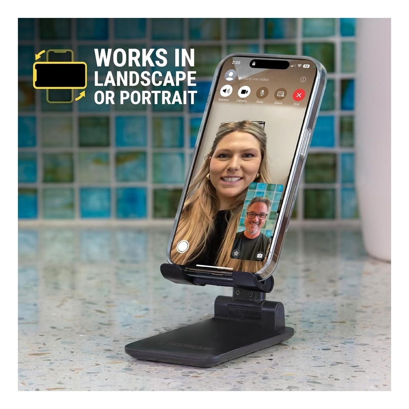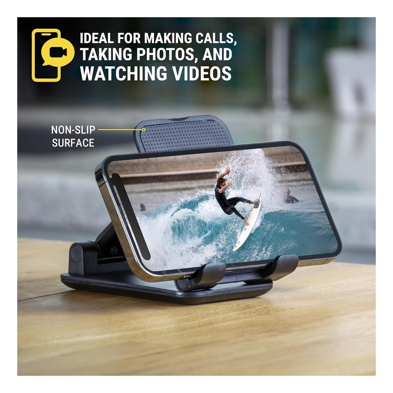 - Whether you place your phone in landscape or portrait, this stand holds it steady on its non-slip surface.