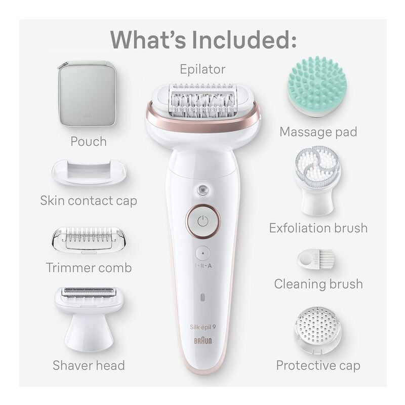 Braun Silk-épil 9 SkinSpa 9-080 Epilator Wet & Dry, Deep body exfoliation brush, Massage Cap lasting smooth skin, Pouch. +6 Extra