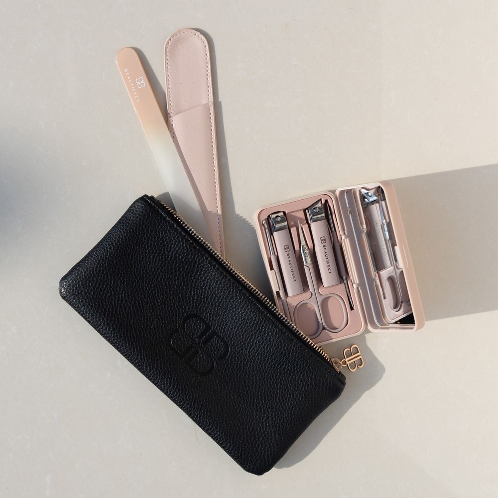 Made from luxuriously soft grained vegan leather in our classic Nude or Black color and finished with signature zips and a central embossed Beautifect logo.