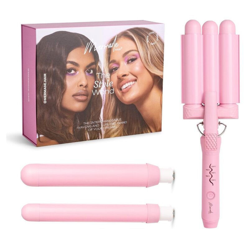 Mermade your way with the interchangeable Style Wand. Coming with three detachable heads, this kit has been curated to take your hair game to the next level. Create coveted curls with the 25mm Curling Tong, big bouncy curls with the 32mm Curling Tongand beachy waves with the 28mm Waver. All you have to do is decide on a vibe, and the day (or night) is yours. Each attachment is made with ionic ceramic so your hair is protected from unnecessary heat damage, while your curls are long-lasting and super shiny. The interchangeable Style Wand is the one-stop hot tool you need to add to your collection.