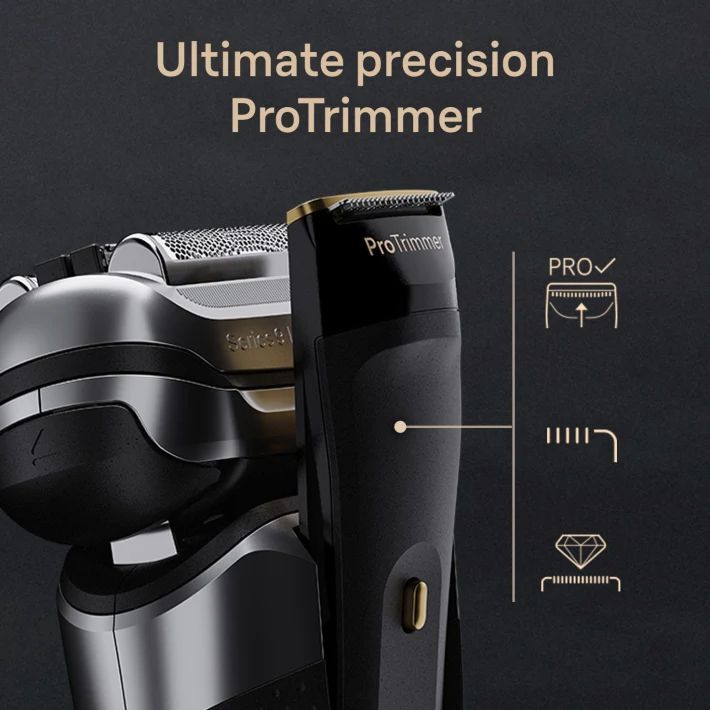 - Built-in precision Pro Trimmer, enhanced with surgical-grade steel, gives maximum cutting efficiency even on moustache, sideburns and under nose