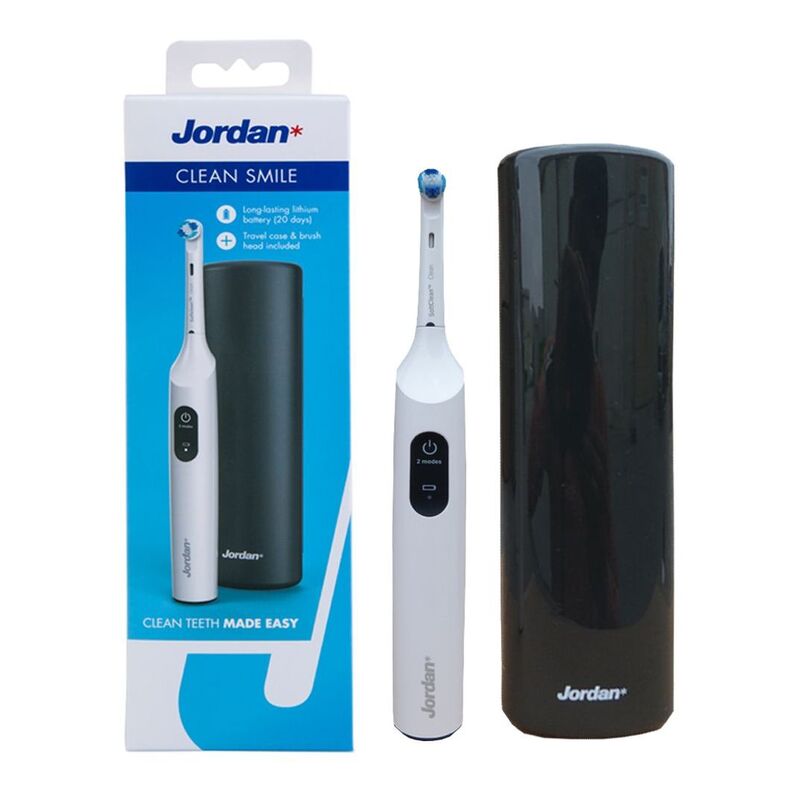 The Jordan Clean Smile series is a new generation of electric toothbrushes that makes it easy to keep your teeth clean by utilizing our SoftCleanTM Technology.Inspired by a Scandinavian design approah for simplicity and user-friendliness, the series combines the effectiveness of an electric toothbrush with the ease-of-use of a manual one. The Jordan Clean Smile series provides a top-quality and effective cleaning. The oscillating brush head technology provides a thorough cleaning and with 2 speed modes you are able to select the preferred intensity. The Jordan Clean Smile also come with a long lasting battery, giving you 3 weeks brush time per charge. In addition, we know that life is busy and it is easy to forget charging, therefore we developed a quick charge option, giving you 1 week of brushing time in just 20 minutes. The built in timer and pressure sensor also helps ensure that you get the best brushing experience, following the 2-minute recommendation by dentists and prevents hard brushing.