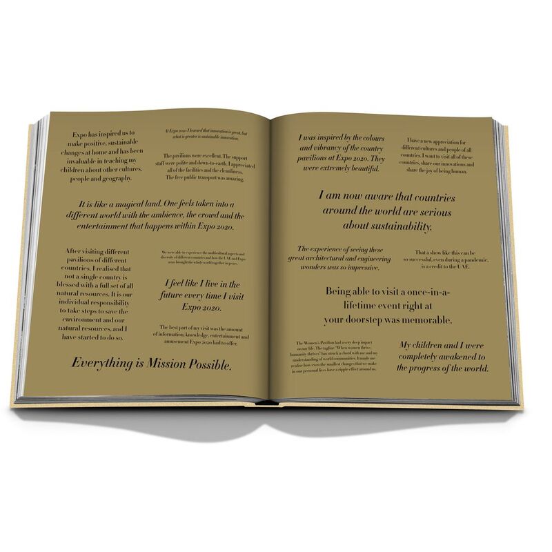 To mark this, Assouline has collaborated with Expo 2020 Dubai on seven unique volumes dedicated to the event. Each book features original images, texts, exclusive interviews and insights into the architecture, inspiration and historical significance on display at Expo 2020 Dubai. Published and edited exclusively by Assouline and Expo 2020 Dubai, each of these seven editions will be valued by collectors around the globe for decades to come.