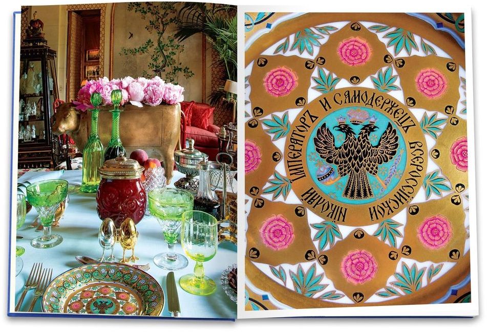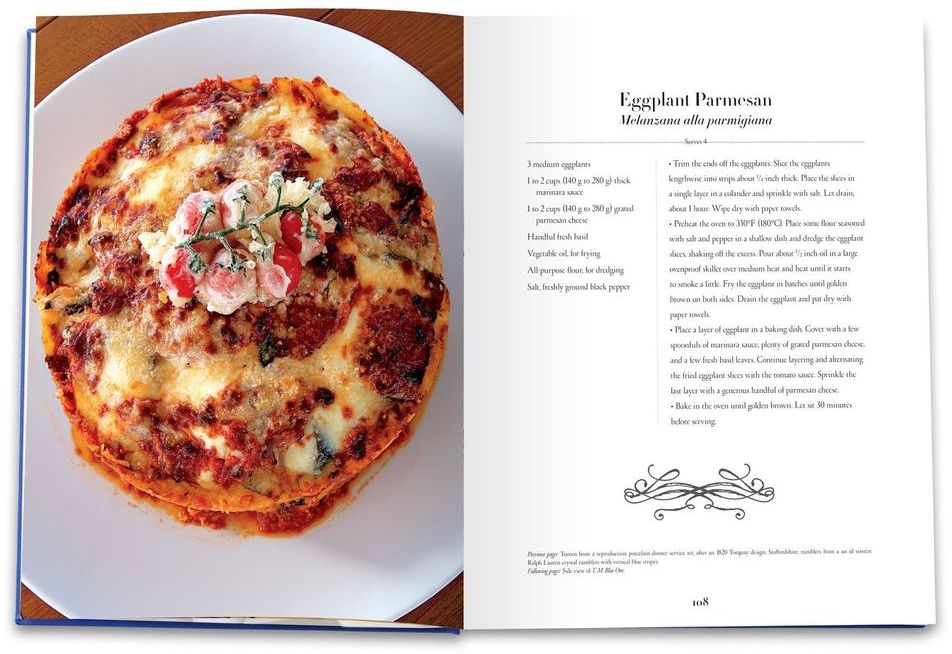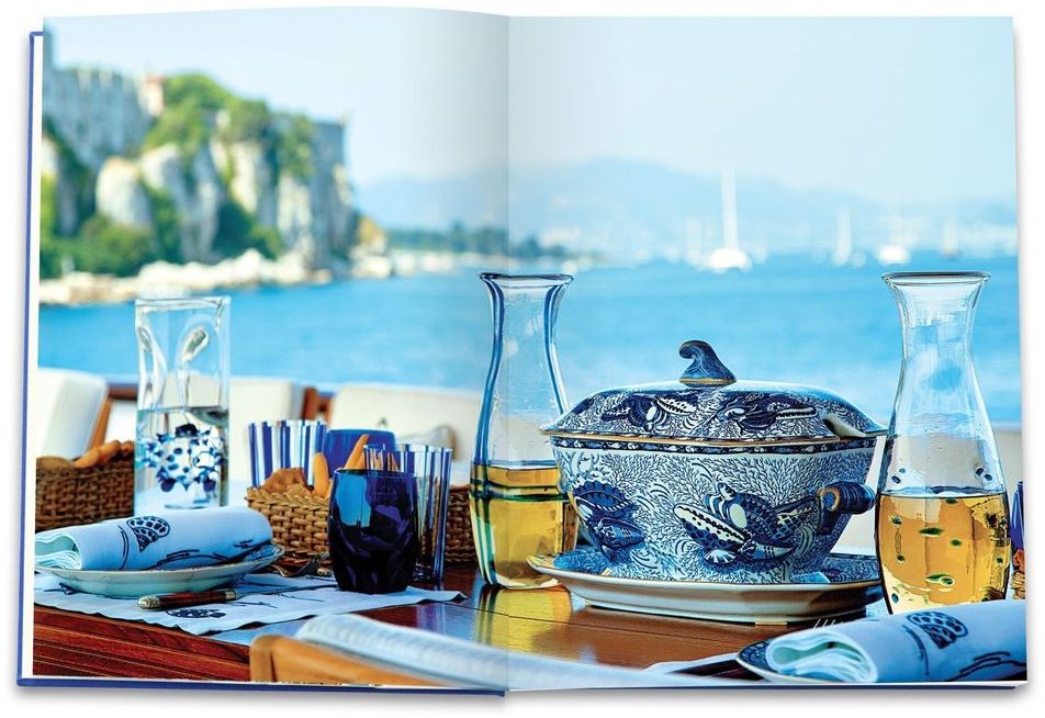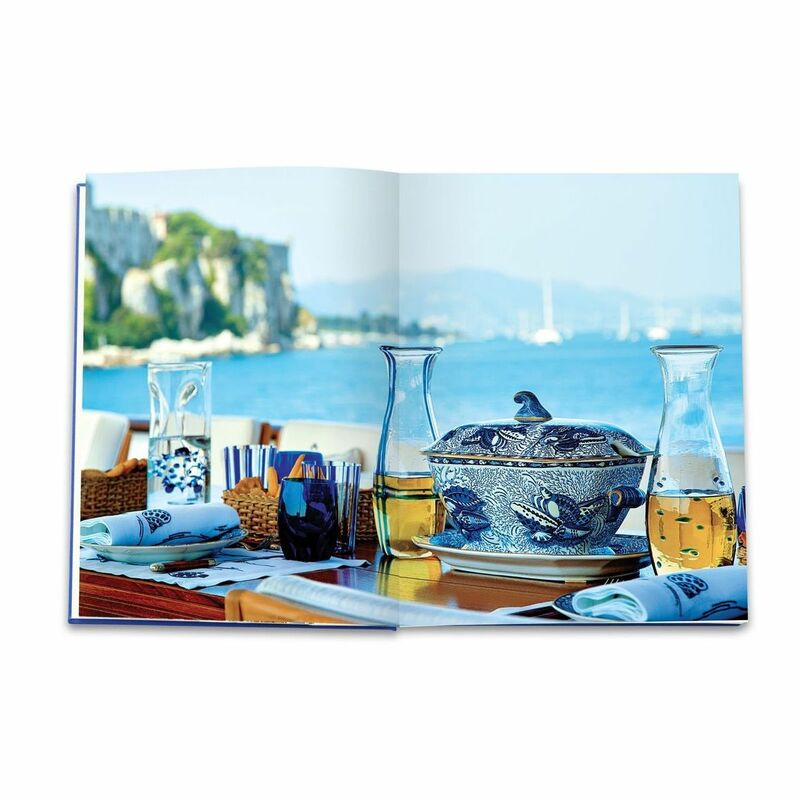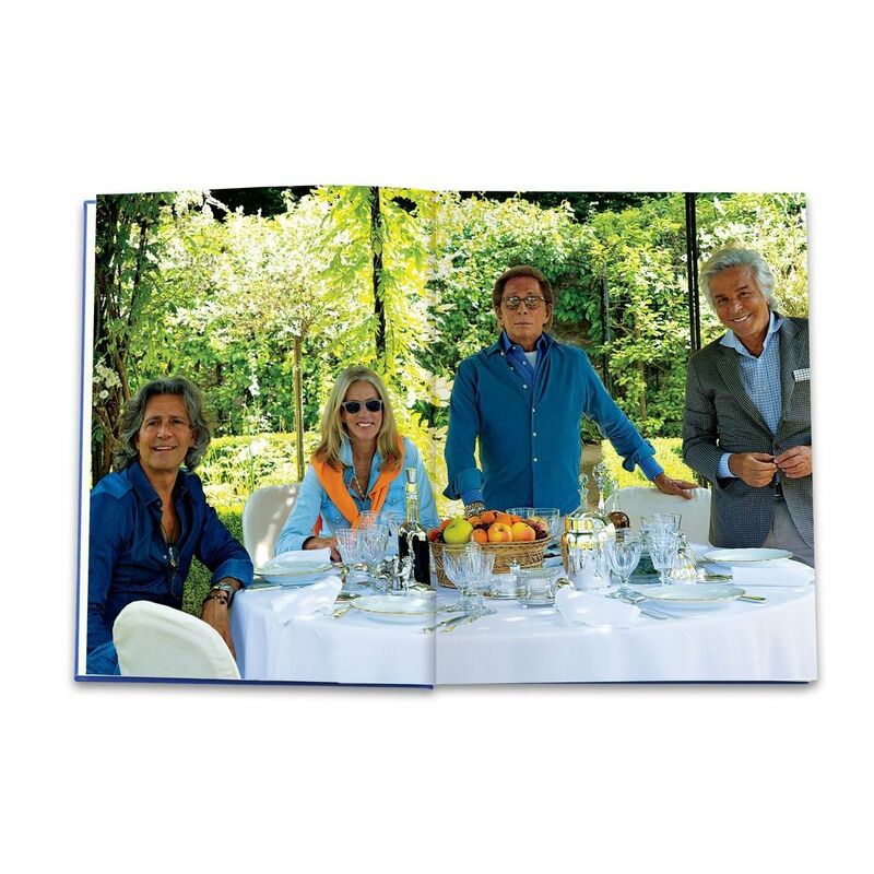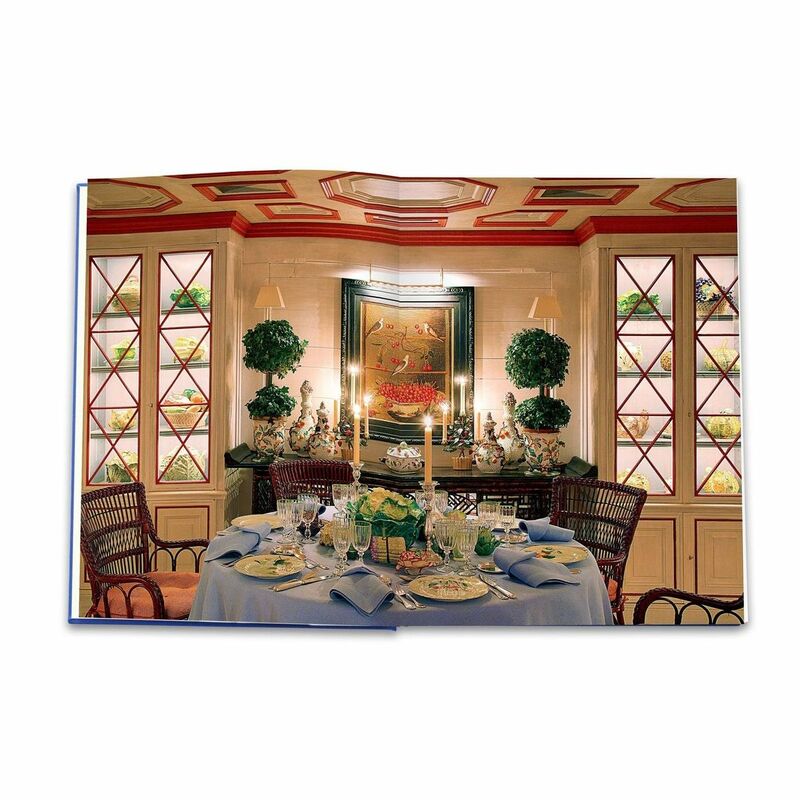 Photographed by renowned Italian photographer Oberto Gili, and organized by residence, this book invites the reader to enjoy various table settings and recipes specific to each home. A flan au chevre may be served on Portuguese porcelain at his ski chalet in Gstaad, while a visit to his home in London reveals a “decorating masterpiece”--says Talley in his text--with an orientalist dining room of blue and white china. The New York City pied-a-terre showcases “table decorations…limitless in their exquisiteness” including Russian dinner-service sets and ruby red Irish glass plates. On T.M. Blue One, guests are served Mediterranean-inspired cuisine atop custom, seafaring-themed dinner service sets. “I love sharing the things in my life with my friends,” Valentino says.