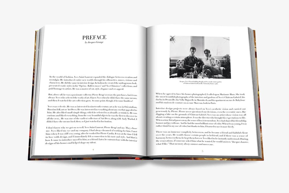 Readers are invited to discover the couple’s savoir-faire through the most exquisite photographs of the interiors and gardens of Yves’s Château Gabriel, the dacha in Deauville; the Villa Majorelle in Marrakech; the apartment on rue de Babylone and his maison de couture on avenue Marceau. With photographs by Marianne Haas, and texts and special contributions from Jacques Grange, Catherine Deneuve, Betty Catroux, Laurence Benaïm, Louis Benech and other members of Yves’ tribe, the creative couple’s legacy lives on.