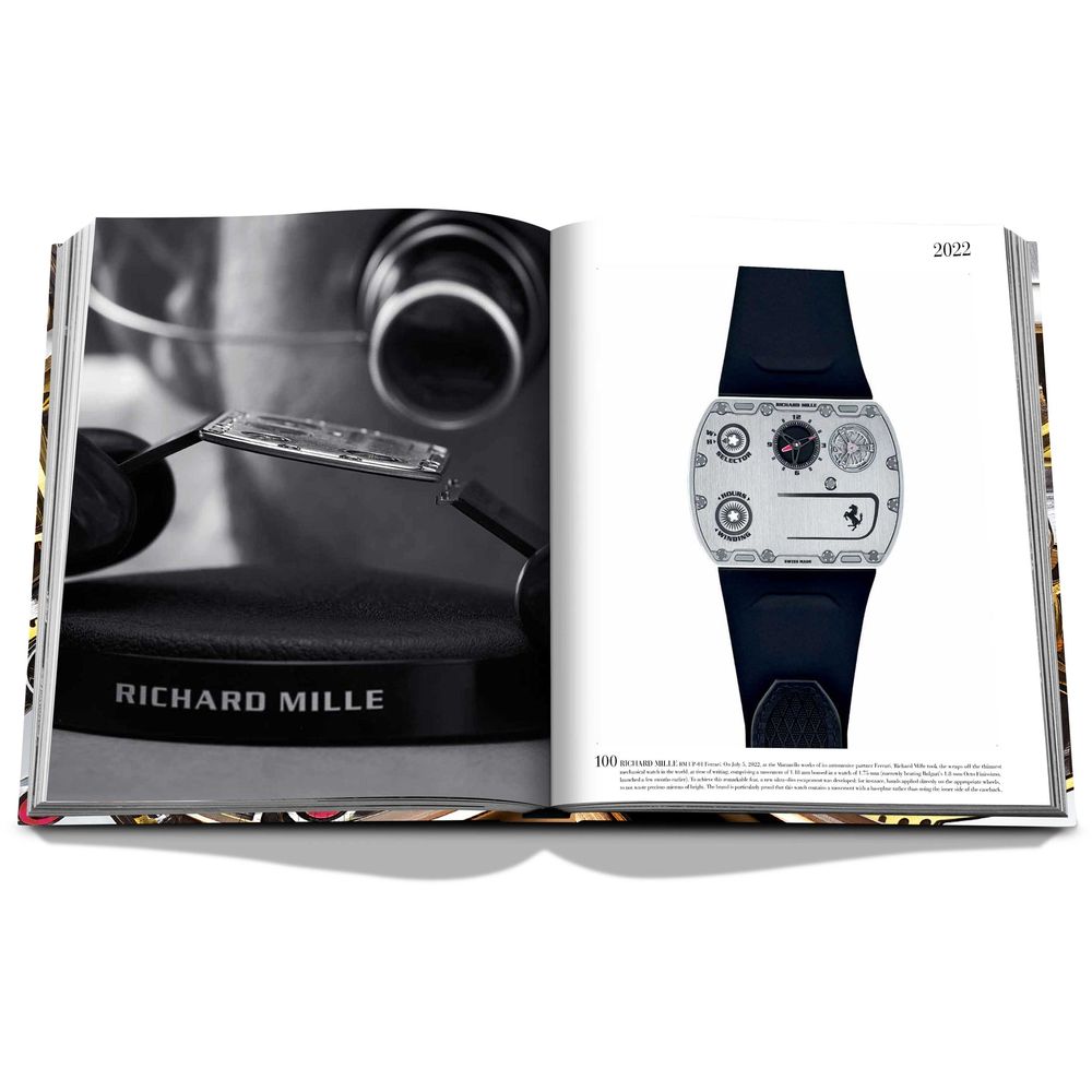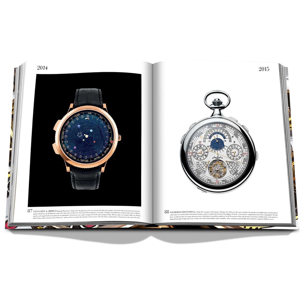 These miniature machines reflect the twentieth an...d twenty-first centuries’ incredible technological advances and social changes, from the invention of the airplane to the effects of two world wars to the advent of space exploration and the dawn of the digital age. Featuring illustrious names such as Audemars Piguet, Cartier, Jaeger-LeCoultre, Richard Mille, Rolex and Vacheron Constantin, these 100 timepieces include new additions like the 1925 Patek Philippe Ref. 97975, the earliest known perpetual calendar wristwatch, the 2014 Van Cleef & Arpels Midnight Planétarium and the 2022 Jacob & Co. Opera Godfather Musical Watch. This handcrafted Ultimate Collection volume features hand-tipped images and is presented in a luxury clamshell case.