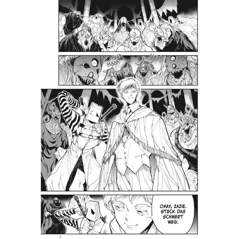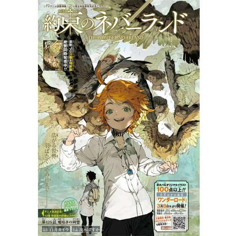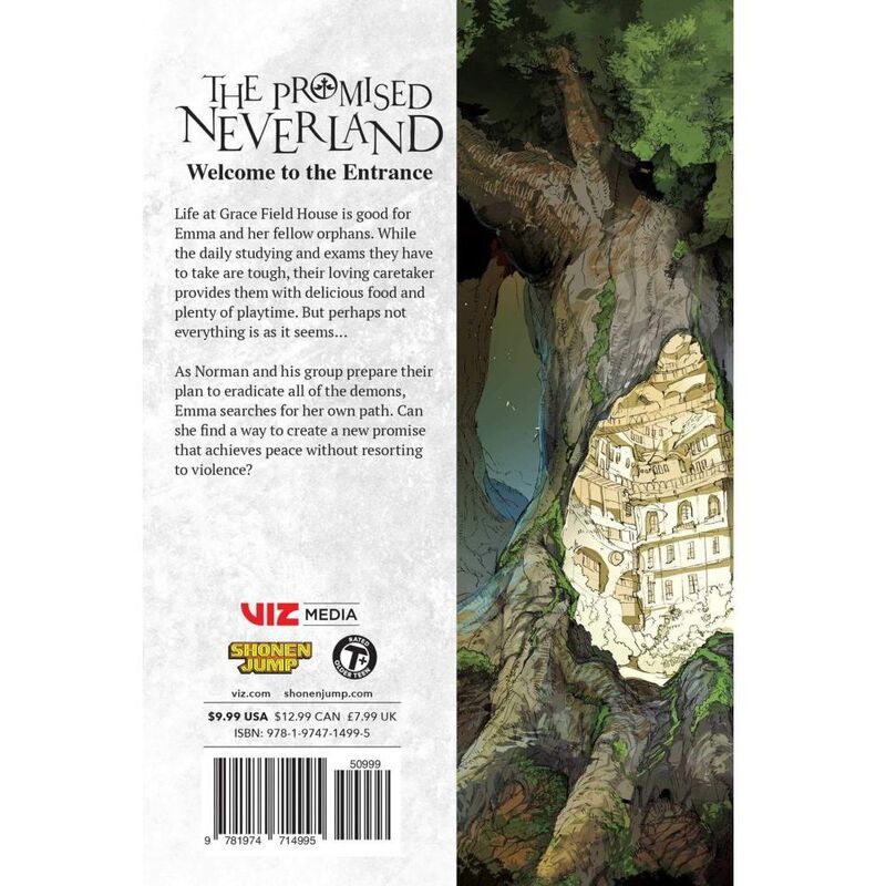 Life at Grace Field House is good for Emma and her fellow orphans. While the daily studying and exams they have to take are tough, their loving caretaker provides them with delicious food and plenty of playtime. But perhaps not everything is as it seems… As Norman and his group prepare their plan to eradicate all of the demons, Emma searches for her own path. Can she find a way to create a new promise that achieves peace without resorting to violence?