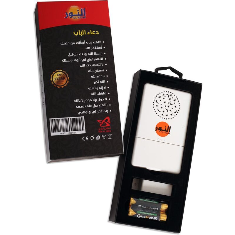 Al Noor ND 1971 Door Dua (UAE National Day Special) More Than 60 Dua's, High Quality Voice, Put the machine on the door inside, Put the small magnet on the doorcase. Put the arrow of the magnet in the front of the red arrow in the machine. Remain space between the magnets and machine.