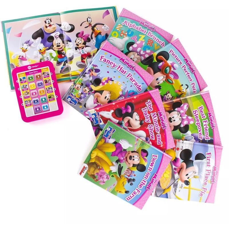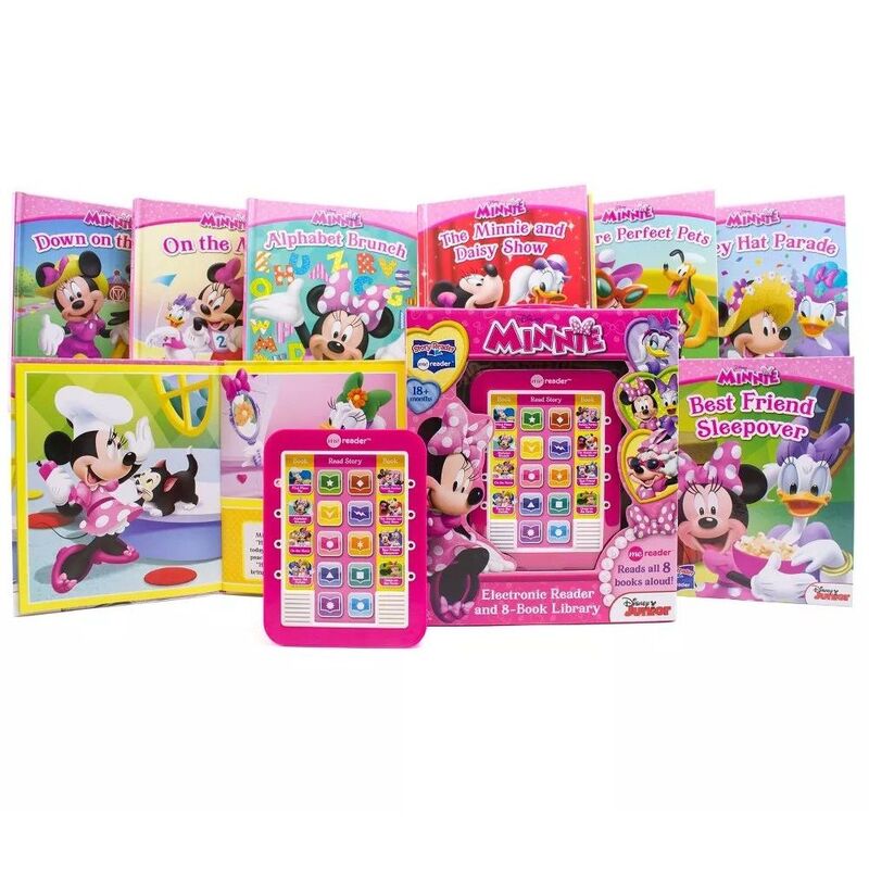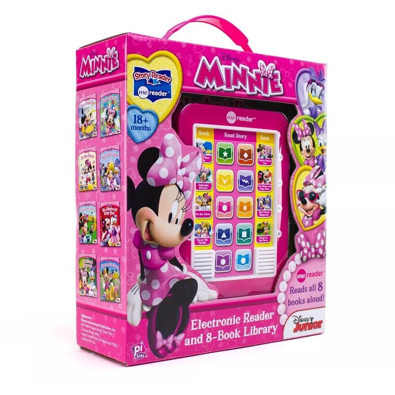 This adorable Minnie Mouse book collection is packaged with a sleek Me Reader Module that reads each book aloud. Choose a book, press the matching book and page buttons on the module, and hear the whole story, along with fun and surprising sounds! Follow along in the book for a fun, independent reading experience that builds confidence in beginning readers. Story sounds and expressive narration enhance reading comprehension. This Electronic Reader Library is special