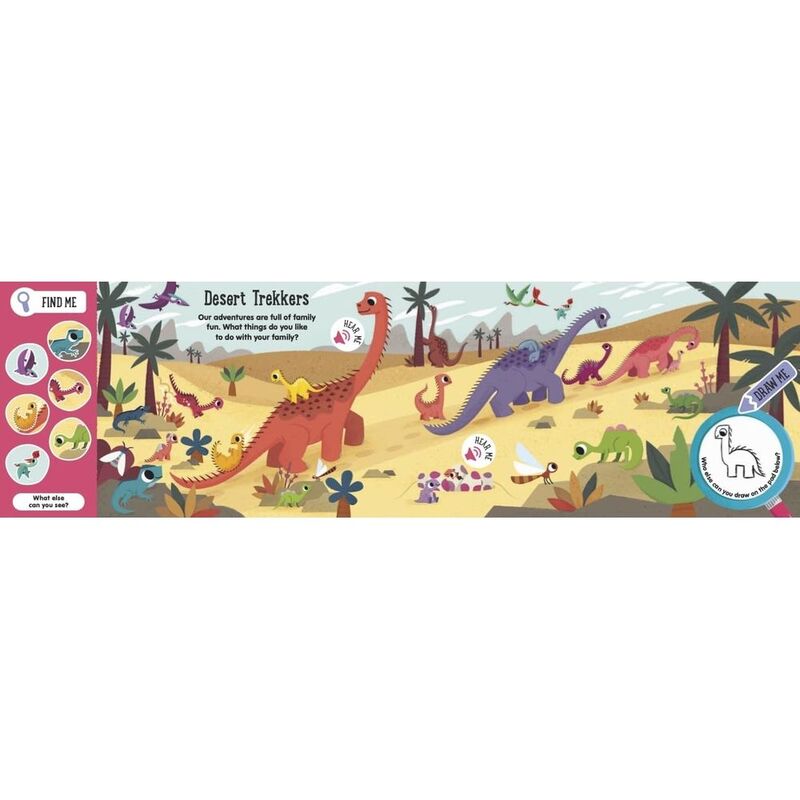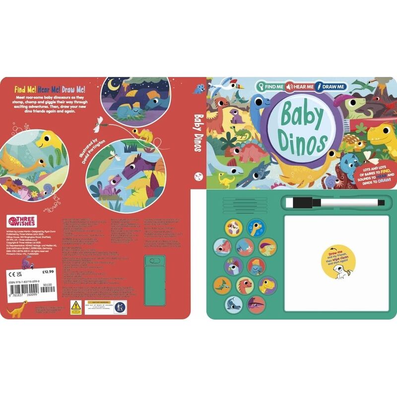 Meet roar-some baby dinosaurs as they stomp, chomp and giggle their way through exciting adventures. Then, draw your new dino friends again and again with the whiteboard and wipe-clean pen.
