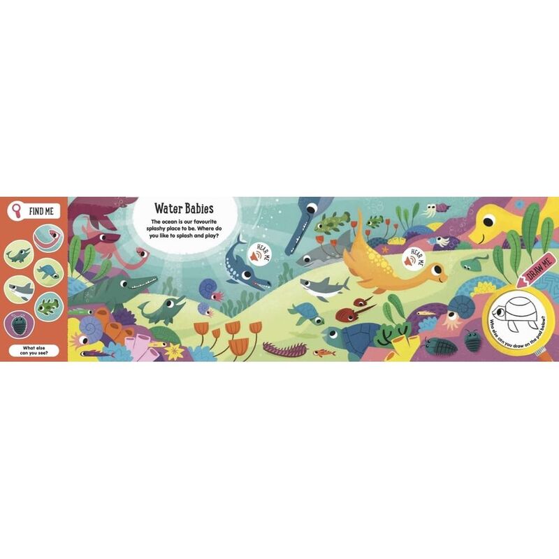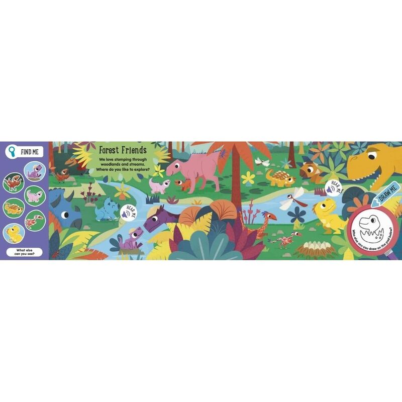 Mini explorers will love immersing themselves in the prehistoric world, with lots and lots of cute creatures to find. They'll delight in pressing the 12 sound buttons to hear dinosaur families having fun in the jungle, ocean, desert and more.
