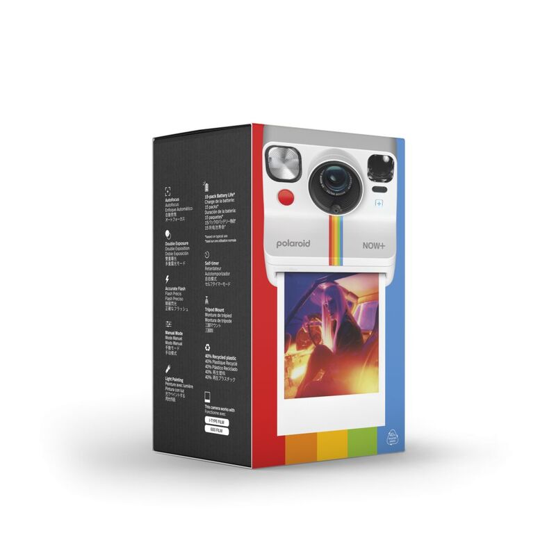 The app-connected Polaroid Now+ Generation 2 instant camera gives you creative control through the Polaroid App: Aperture priority, light painting, double exposure, self-timer, manual mode and more—plus 5 lens filters you can attach to the camera. All in a classic design, and now made with 40% recycled materials. Compatible with Polaroid i-Type & 600 film in the original Polaroid instant film format.