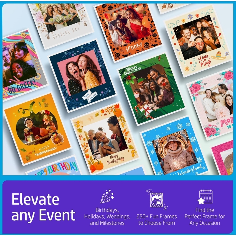 • Lightweight. At just over 8 pounds, it's portable and fun with 250+ frames and stickers for every occasion.