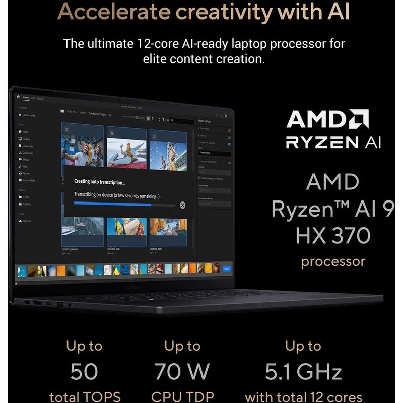ASUS ProArt P16 OLED Laptop - H7606WI-ME123W - AMD Ryzen AI 9 HX 370/64GB RAM/2TB SSD/NVIDIA GeForce RTX 4070 8GB/16" OLED 4K (3840x2400) Touch Screen/Windows 11 Home - Nano Black