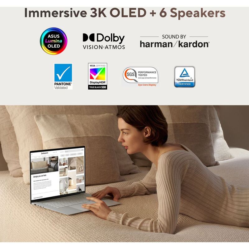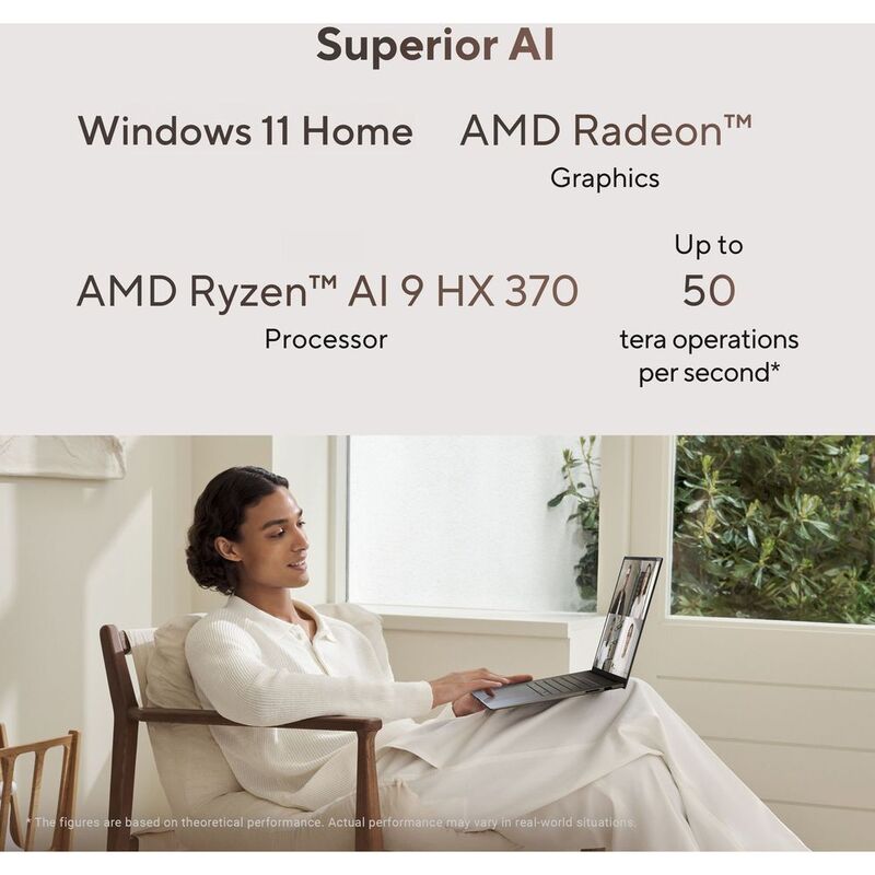 This new-era ASUS AI PC harnesses the latest AMD Ryzen™ AI processor, enhanced by quiet ambient cooling. It’s designed to enrich your on-the-go lifestyle, with an astonishingly thin 1.1 cm1 chassis housing an advanced 16-inch 3K ASUS Lumina OLED2 display and immersive six-speaker audio.