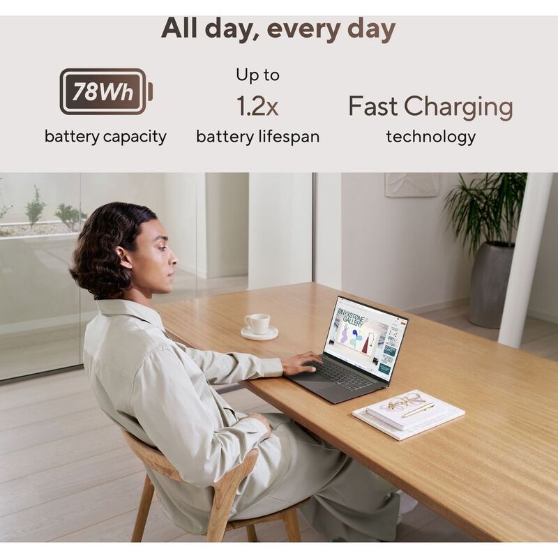 Zenbook S 16 is the first ultrathin 16-inch new-era ASUS AI PC, combining performance with sophistication. It has been completely redesigned from the inside out. The chassis incorporates our exquisite new Ceraluminum™, a high-tech ceramic in a range of nature-inspired colors. It provides the characteristics of hardness while completing the ultra-slim design and withstand the test of time.