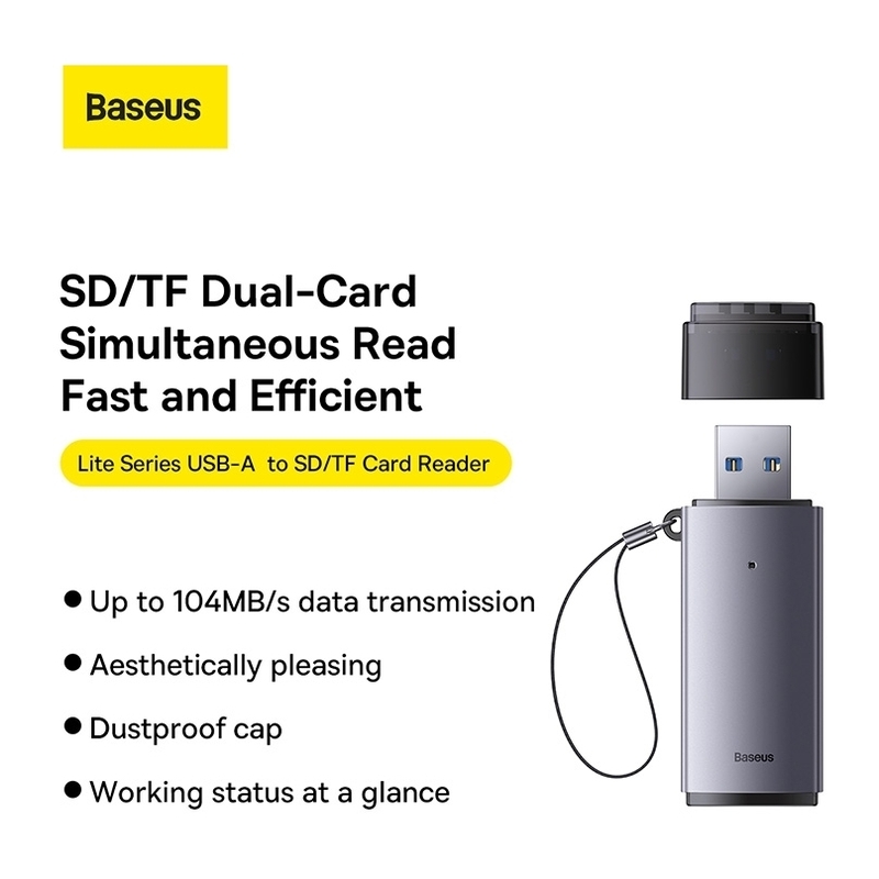 Baseus Lite USB-A to SD/TF Card Reader - Grey