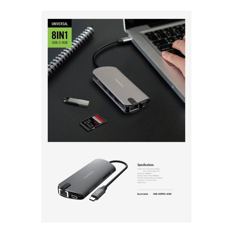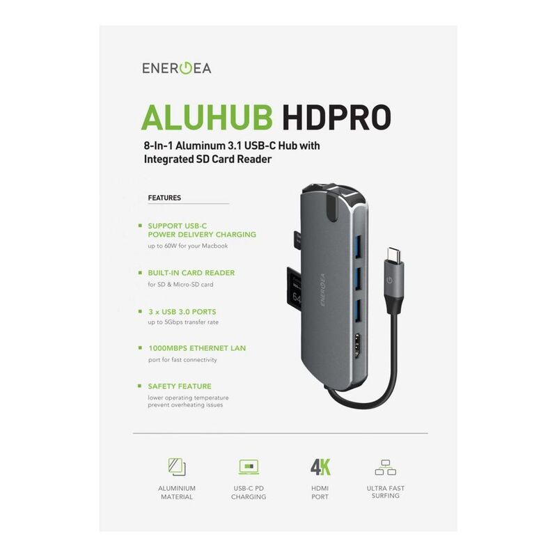 Energea Aluhub HD Pro 8 In 1 Superspeed 3.1 USB-C Hub Gunmetal