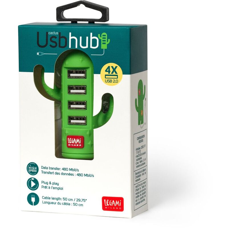 The Legami 4-Port Mini USB Hub - Cactus brings colour to your tech and lets you connect up to 4 devices at the same time. With a cable length of 50 cm, it's a desktop essential for anyone working with multiple devices at once.