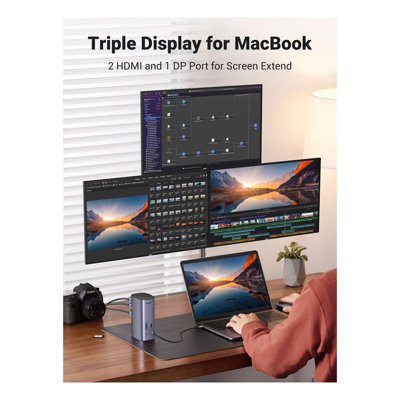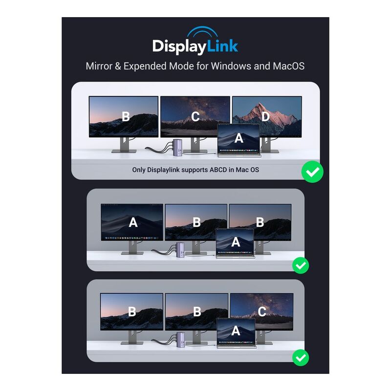 - Triple Display Extended: With the Display Link technology, UGREEN USB C Docking Station support extends 3 monitors for Windows and macOS systems. It supports both extended mode and mirror mode, which can greatly improve your work efficiency. (Note: Display and network functions need to install the driver)