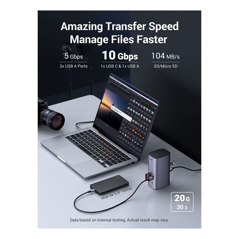 - Transfer Files in Seconds: With 1x USB-A 3.2 Gen 2 and 1x USB-C 3.2 Gen 2 ports, this MacBookDocking Station supports up to 10Gbps data transfer speed. It can meet your needs of transferring data in a very short time, greatly saving your waiting time