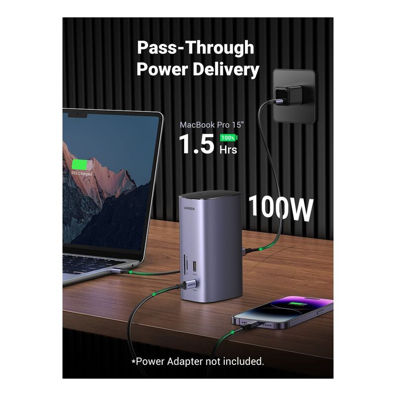 - PD 100W Fast Charge: The 12-in-1 Laptop Docking Station is equipped with a 100W PD 3.0 charging port. It only takes 1.5 Hours to fully charge MacBook Pro 15'', and without taking up another port of the laptop. (The charger is not included)