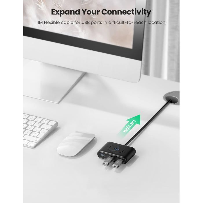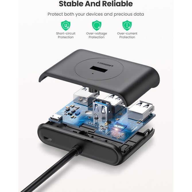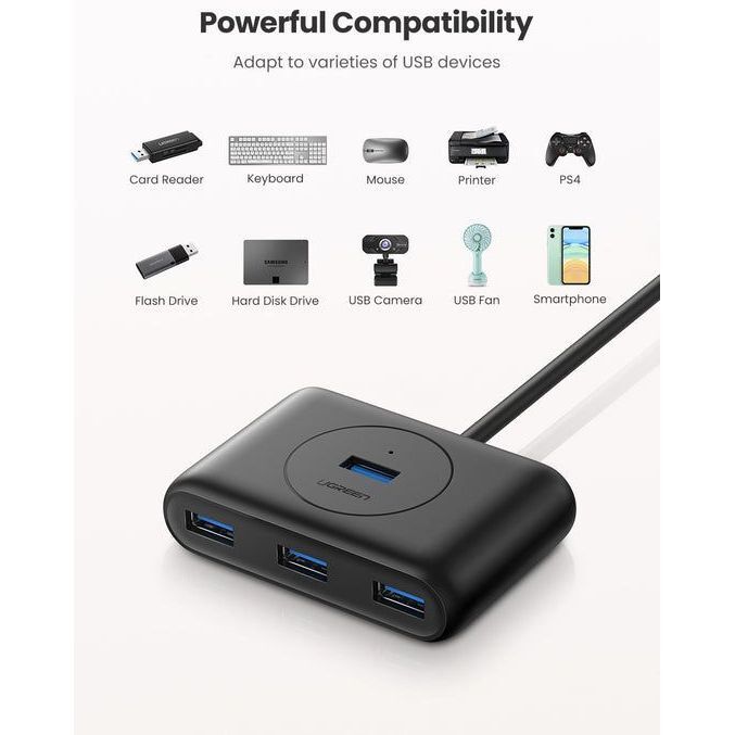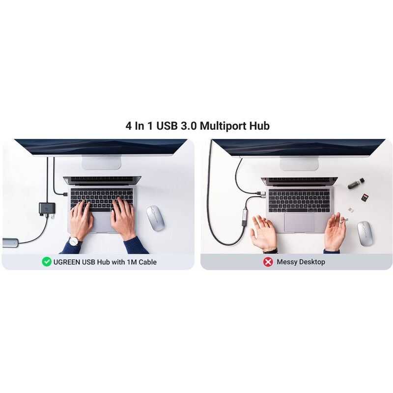 UGreen 4-In-1 USB 3.0 A Data Hub 1M Cable - Black