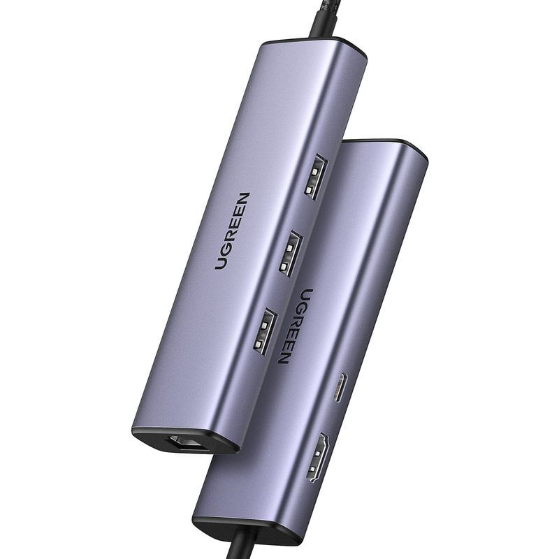 UGREEN 6-in-1 USB C HUB 3xUSB-A 3.0/USB-C 100W PD/RJ45/4K HDMI - Space Grey