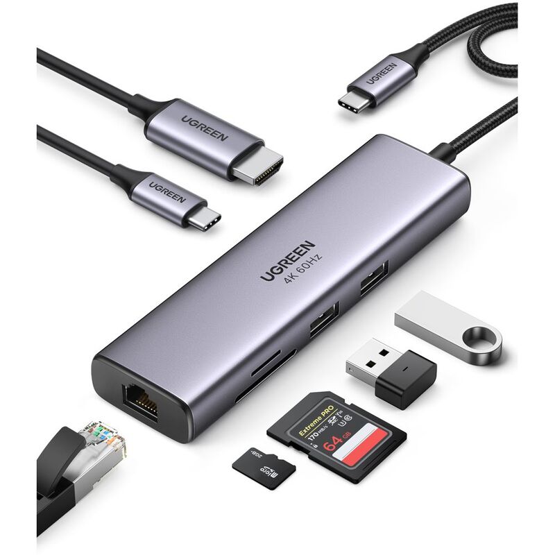 - A device will offer you a number of additional ports that you will be able to use without problems. It will make you discover new possibilities of your computer. Specification: Brand: Ugreen Type: HUB Standard USB connector: 3.2 gen. 1 Jack: USB Type C Ports: 3 x USB 3.2 gen. 1.1 x HDMI 2.0, 1 x SD card reader, 1 x TF card reader Transfer speed: up to 5 Gb/s Maximum resolution: 4K @ 60Hz Material: Aluminum The set contains: 1 x HUB The most important features: High standard of connectors High data transfer speed Solid workmanship Compact dimensions The optimal length of the cable High versatility The Ugreen gadget is the perfect solution in a situation where you will lack the right number of specific ports