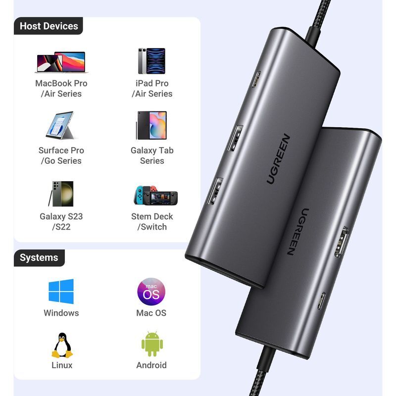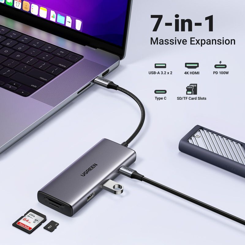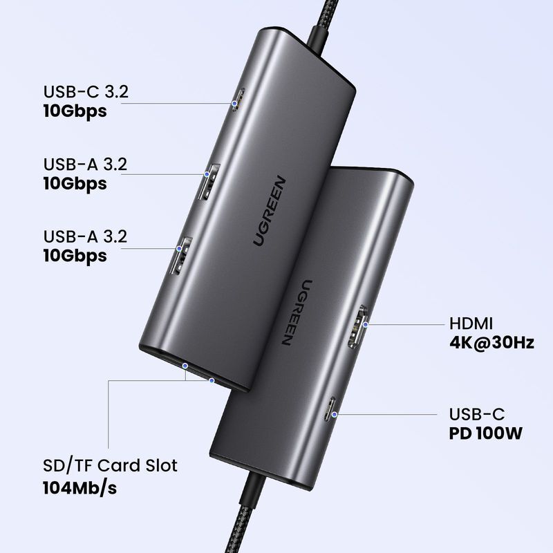 UGREEN 7-in-1 USB-C HUB 2xUSB-A 3.2/USB-C 100W PD/USB-C 3.2/SD/TF/4K HDMI - Space Grey