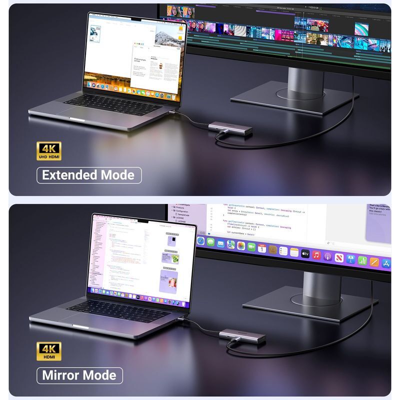 - 7-in-1 USB-C HUB 2xUSB-A 3.2 + USB-C 100W PD + USB-C 3.2 + SD/TF + 4K HDMI Space Grey