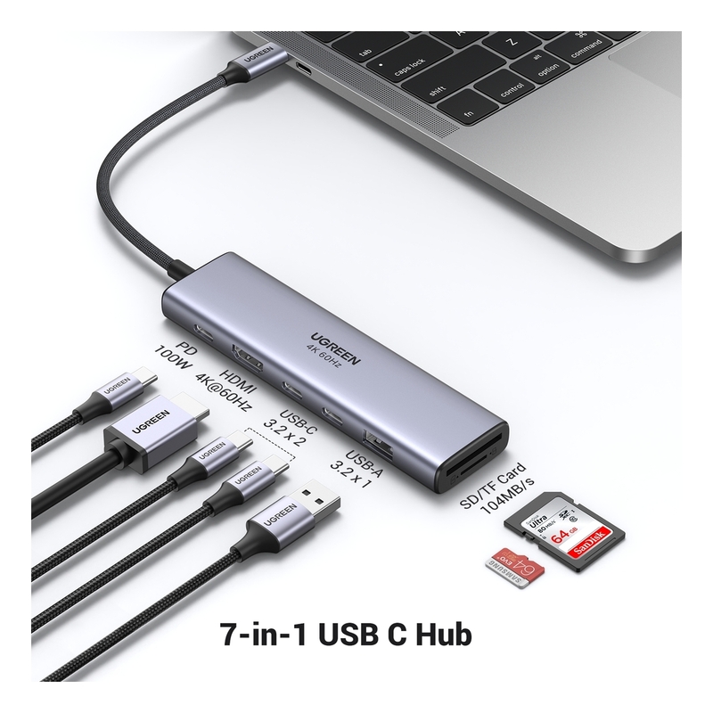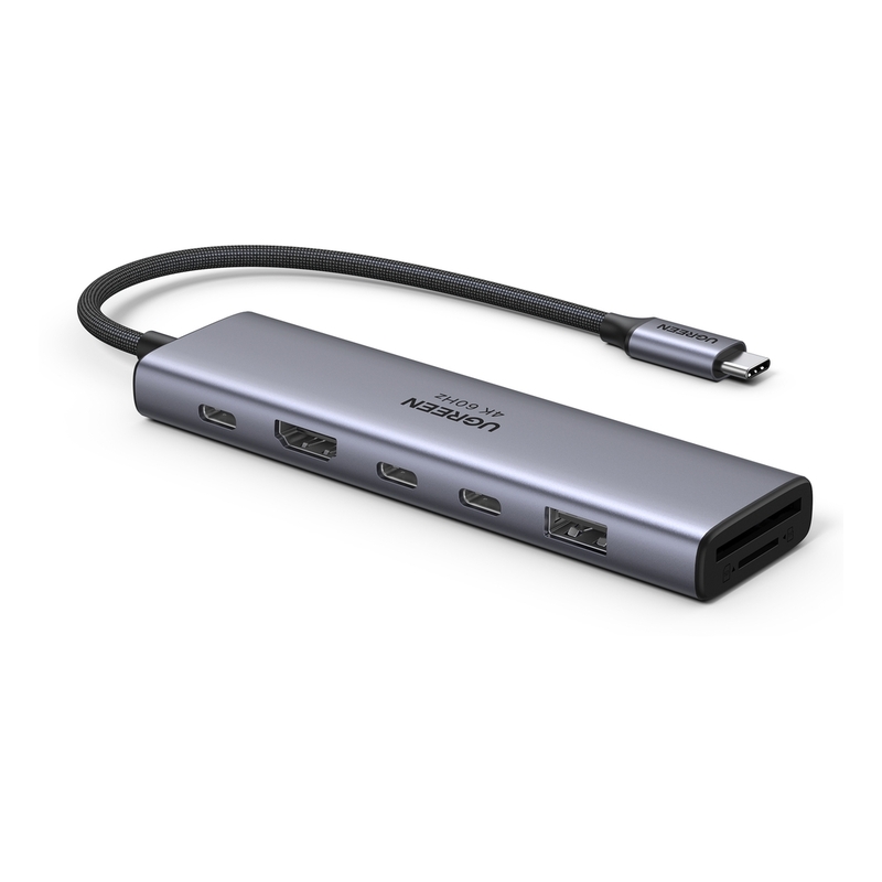 UGREEN 7-In-1 USB-C Hub USB-A 3.2 + 2X USB-C 3.2 + 4K 60Hz HDMI + SD/TF + 100W PD - Space Gray
