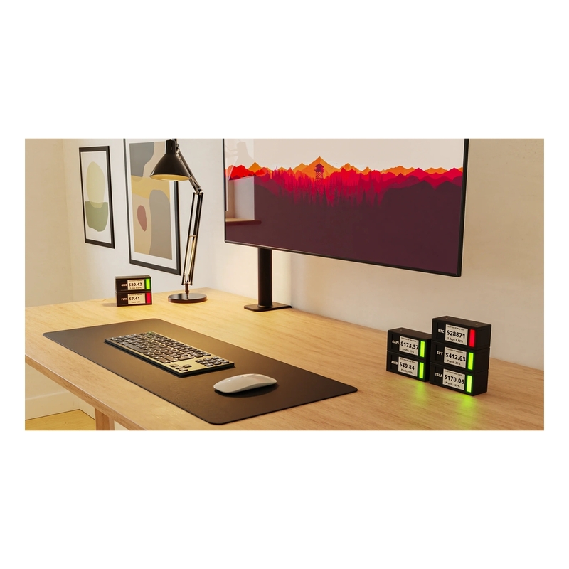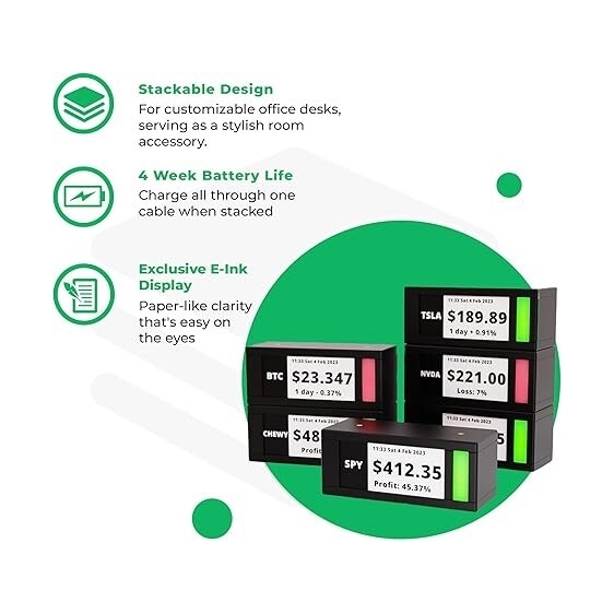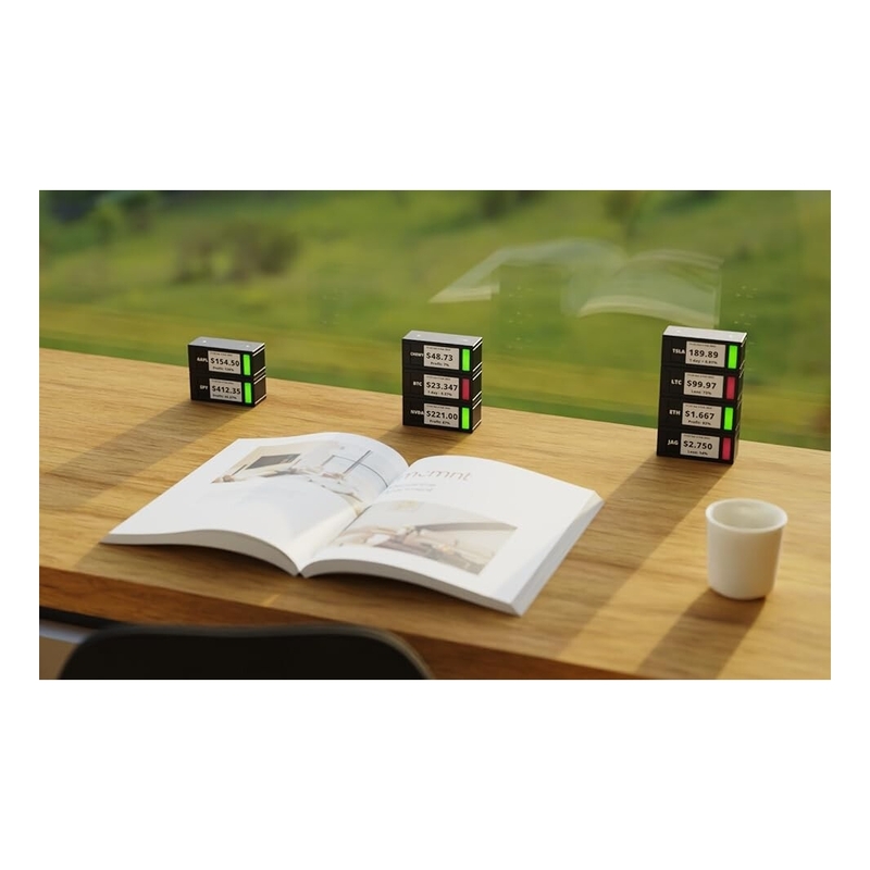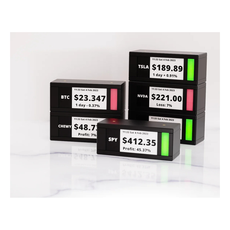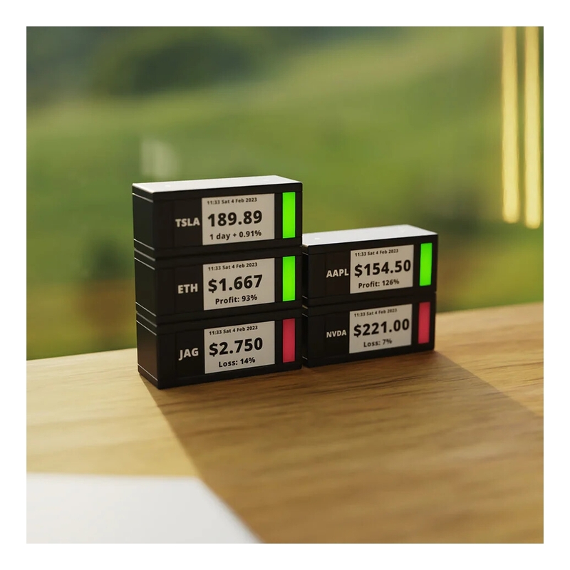 TickrMeter is a compact, real-time stock ticker display designed for traders and investors. It connects to Wi-Fi and streams live stock prices, cryptocurrencies, or other financial data from major exchanges. With a sleek e-ink screen, customizable alerts, and an easy-to-use app, it provides a convenient way to track market movements at a glance.