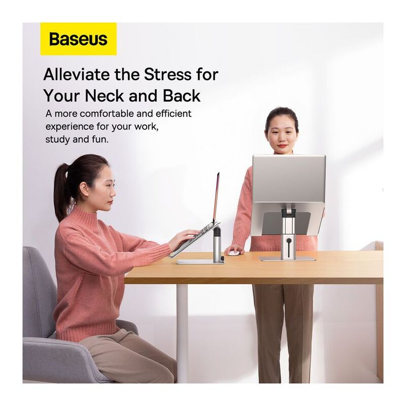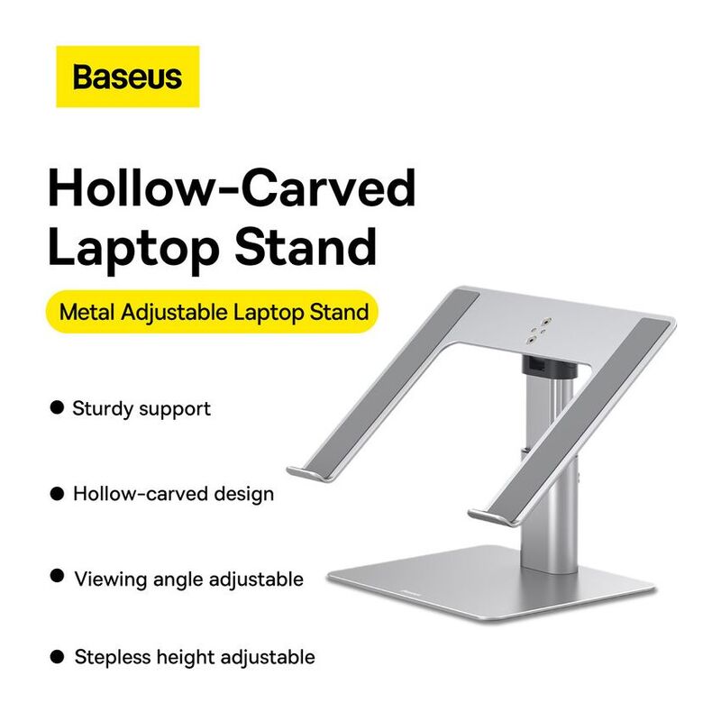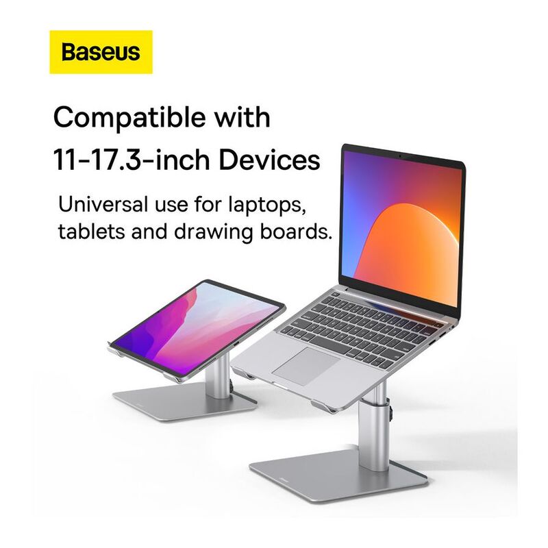 • Laptop stand Baseus - Ensure yourself a dreamlike comfort while working or relaxing. Baseus stand perfectly fits laptops and tablets 11-17.3" and allows efficient heat dissipation. Thanks to adjustable design you can easily adjust it to your needs. For its production we used high grade aluminum alloy, which provides its exceptional durability. It can withstand a load of up to 10kg!