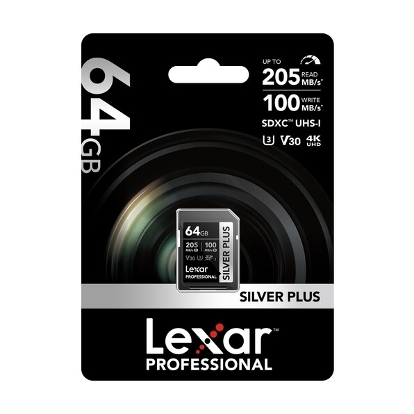 Lexar Professional SILVER PLUS SDXC UHS-I cards up to 205MB/s read 100MB/s write C10 V30 U3 - 64GB