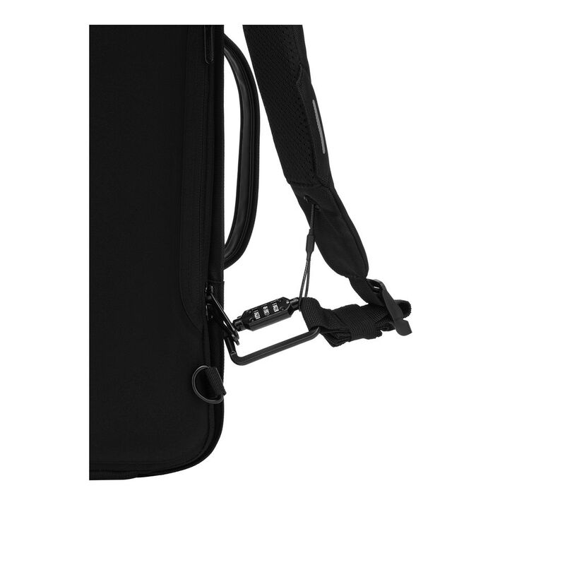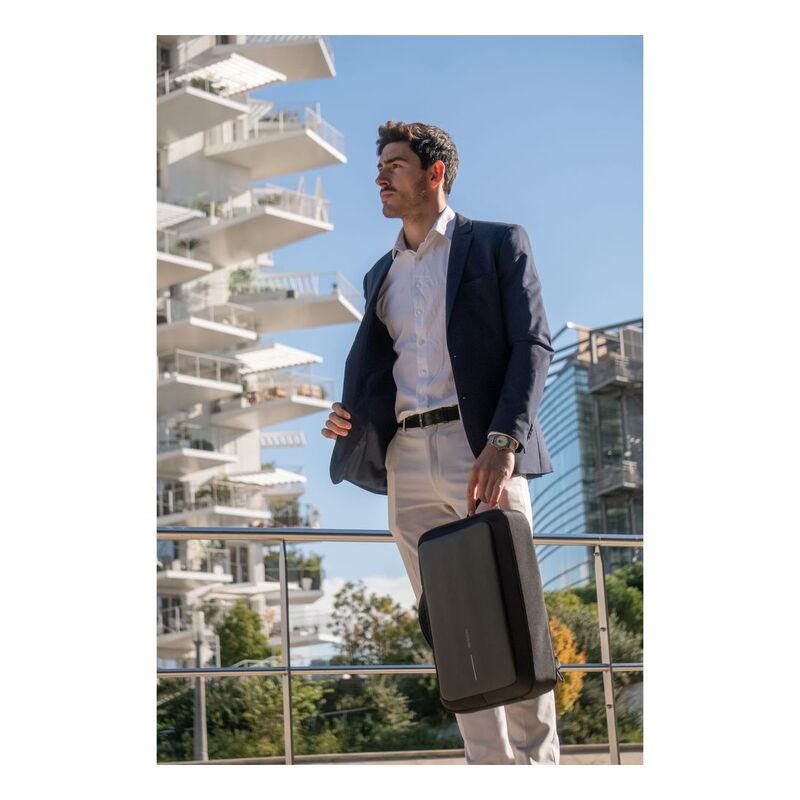 Keep your belongings safe and make your commute more stylish with the new Bobby Bizz 2.0. Ready for any business occasion, you can convert this backpack into a briefcase in a matter of seconds, just by putting the shoulder straps in the back pocket. To keep you and your belongings safe, the iconic Bobby anti-theft design has no front access, hidden zippers, and a hidden RFID-protected pocket. It is enhanced with cut-resistant material and a built-in metal frame. The improved EVA back panel provides additional comfort. You can also securely lock your Bobby Bizz 2.0 to any fixed object with the integrated zinc alloy lock in the right strap. In the backpack interior, there are padded compartments for a 16” laptop, a tablet up to 12.9”, and all your professional gear. Now made from R-pet fabric with the AWARE™ tracer. With AWARE™, the use of genuine recycled fabric is guaranteed. 33% recycled content.