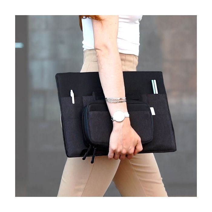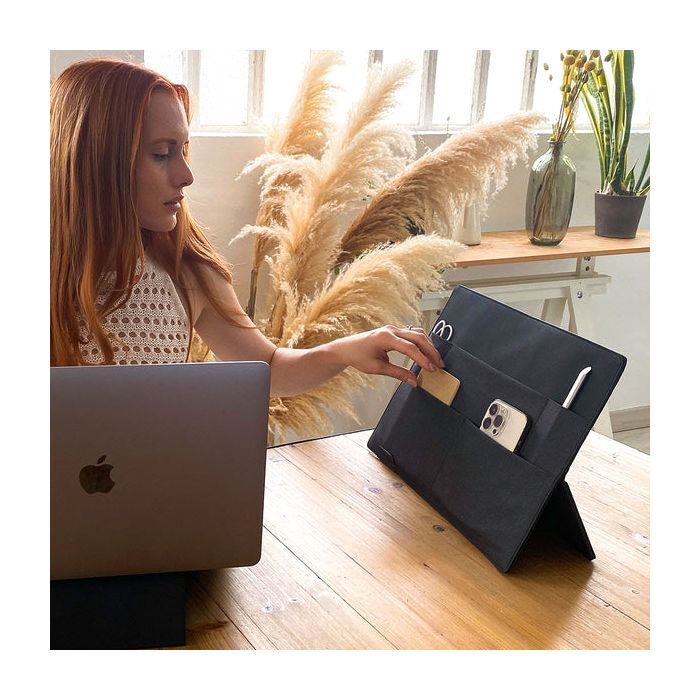 Keep your essentials handy and ready to change places in no time with this laptop & tablet sleeve that becomes a vertical desktop organizer.