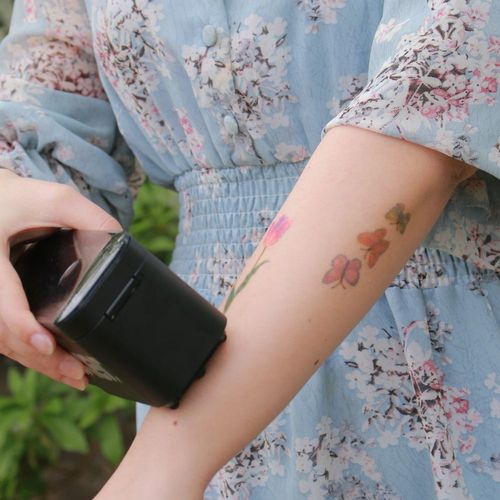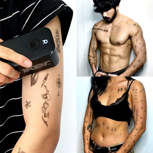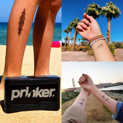 • INSTANT TEMPORARY TATTOOS IN ONLY 3 SECONDS: Express yourself with black temporary tattoos. Upload any design and use the Prinker to glide it on skin in only 3 seconds. Try a custom instant tattoo with old-school phrases, minimal shapes, or bold designs. DIY pieces that speak your mind.