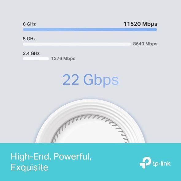 • 12-Stream 22 Gbps Tri-Band WiFi – 11520 Mbps (6 GHz) + 8640 Mbps (5 GHz) + 1376 Mbps (2.4 GHz).
