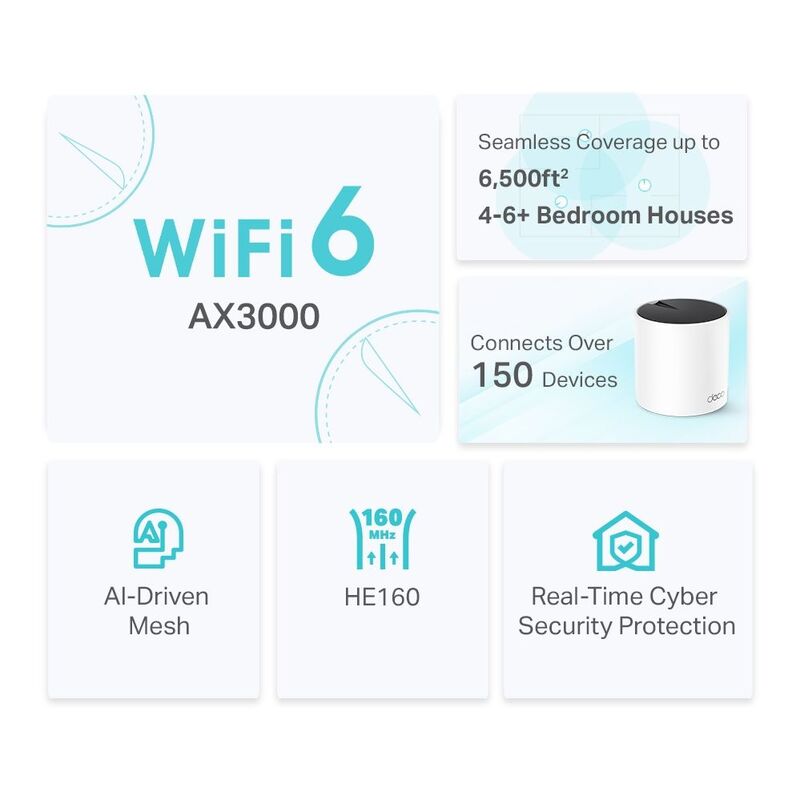 Enhanced by WiFi 6, featuring with OFDMA and MU-MIMO technology, Deco X55 allows you to connect over 150 devices. Enjoy a more efficient network that loads faster without dragging down performance.