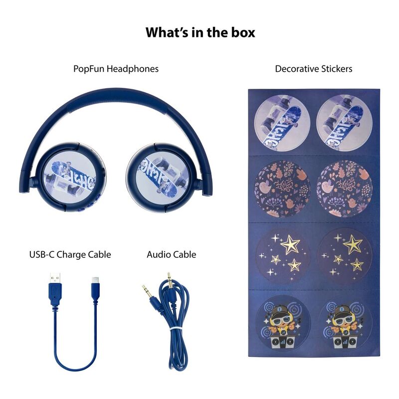 In bold dual-tone colors, the BuddyPhones POP Fun Bluetooth headphones deliver up to 24 hours of vibrant sounds for the enjoyment of bright young listeners. SafeAudio protects hearing by limiting maximum volume to 85dB, or 94dB for noisier surroundings.