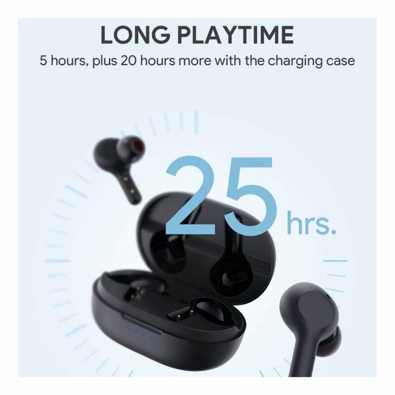 - Long Battery Life: Headphones play Hi-Fi stereo sound for up to 5 hours on a single charge. There's an extra 20 hours of use in the compact charging case that charges quickly over USB-C