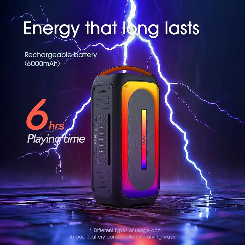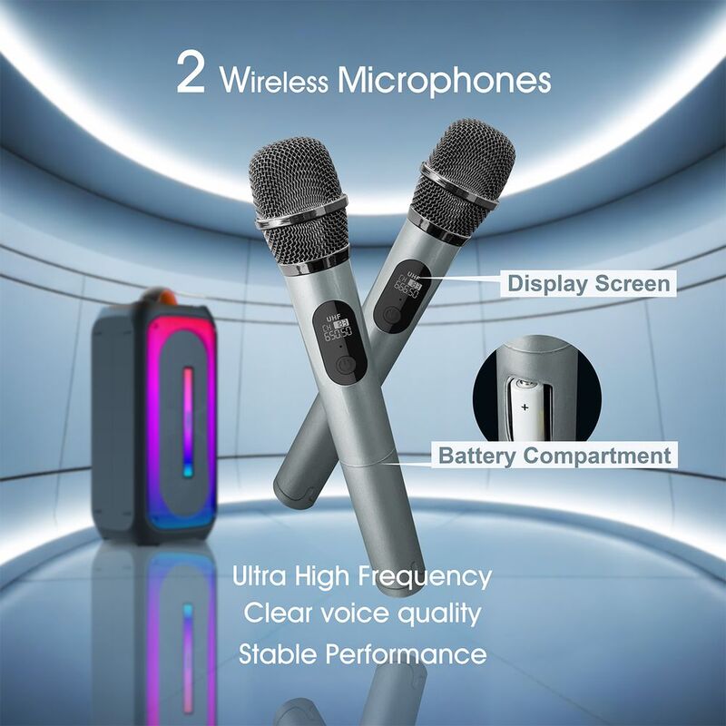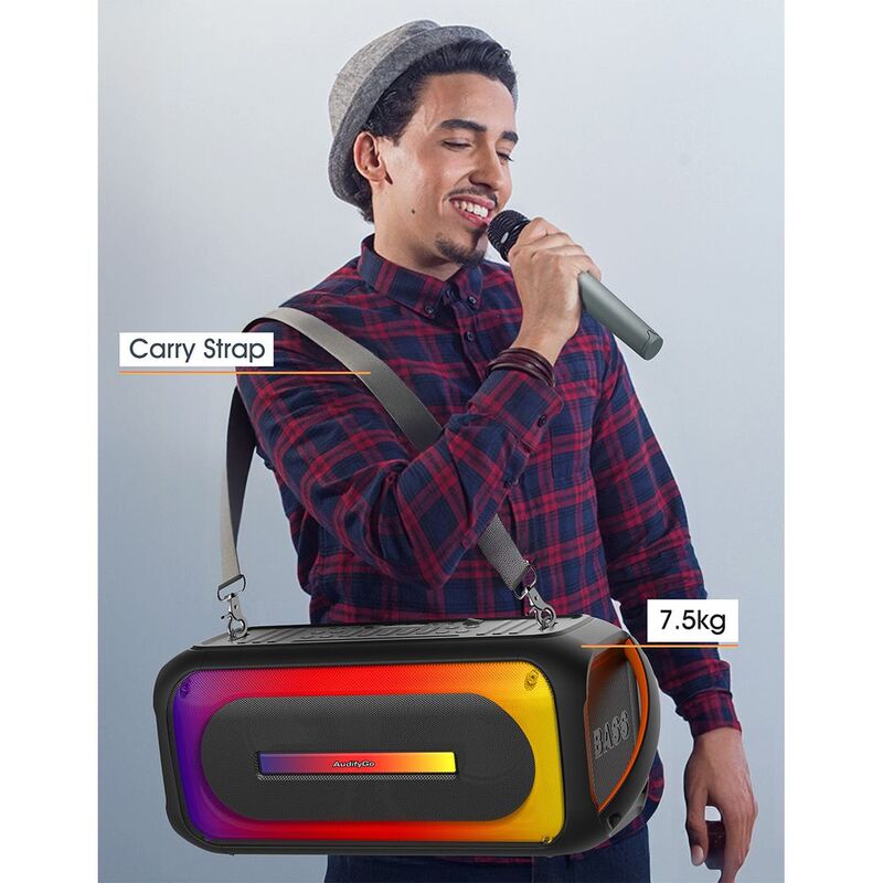 Magic Star AudifyGo BB360 Portable Karaoke Speaker with 2 UHF Wireless Microphones, LED Display, Bass Boost, 60W