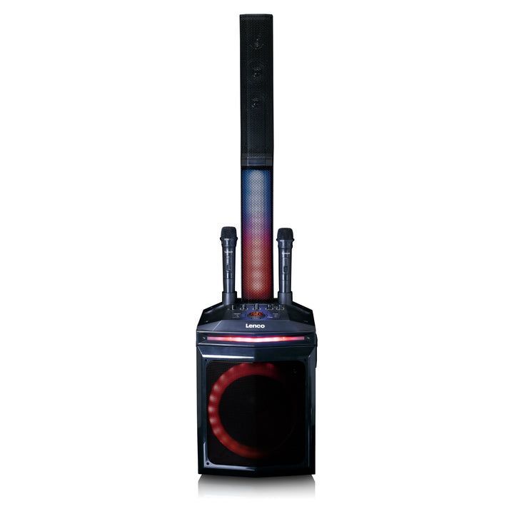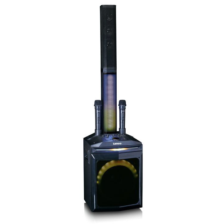 Lenco PA-220BK Bluetooth Party Speaker with 2 Wireless Microphones / Front and Column Lighting