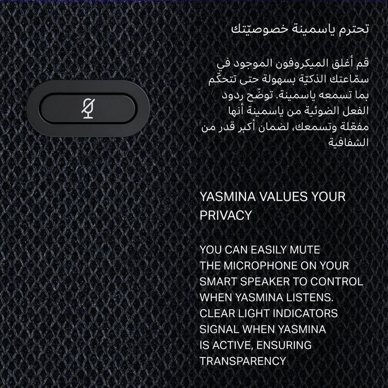 You can easily mute the microphone on your smart speaker to control when she listens. Clear light indicators signal when Yasmina is active, ensuring transparency.
