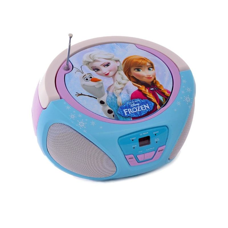 This "Frozen" inspired CD Boombox plays Audio CDs, an AM/FM radio and can either be used through the 2 built-in speakers or through standard 3.5mm headphones. Runs on both electricity and batteries.