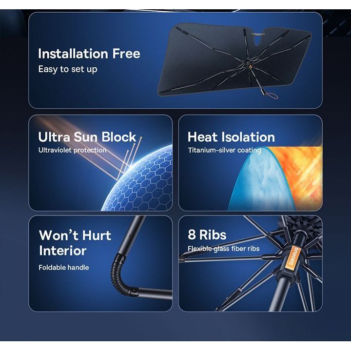 Baseus CoolRide Windshield Sun Shade Umbrella Lite Large - Black