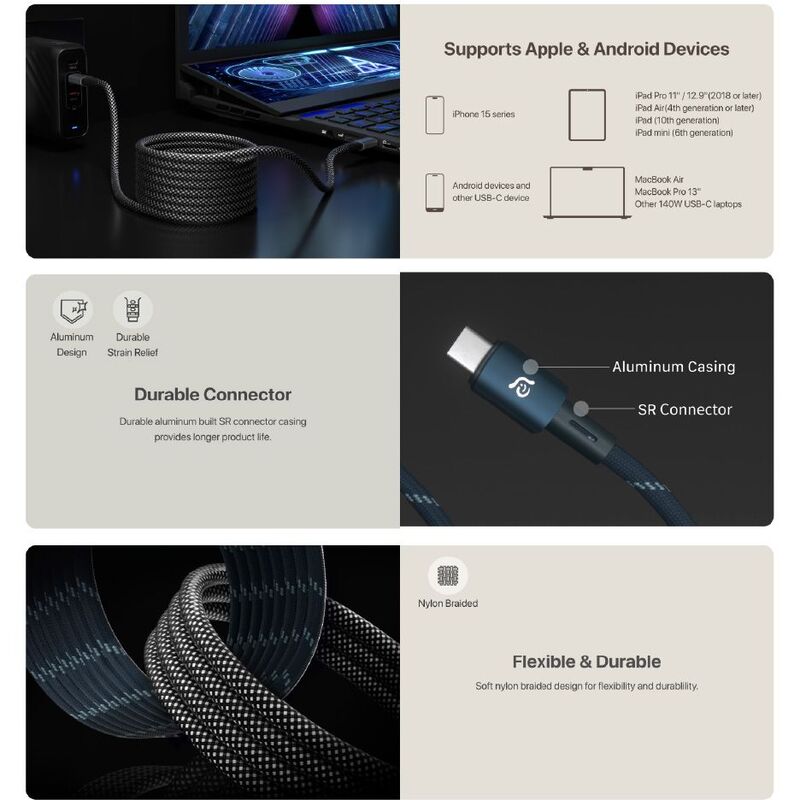 - Supports max 240W(48V, 5A) charging output and USB 2.0, 480Mbps data transfer