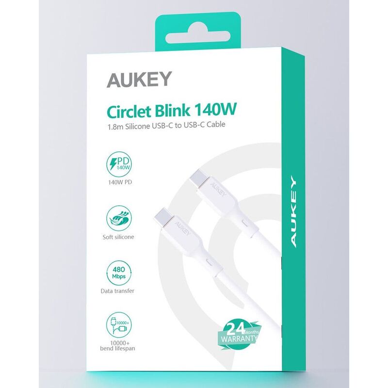 Aukey 1.8M 140W Silicone USB-C To USB-C Cable - White