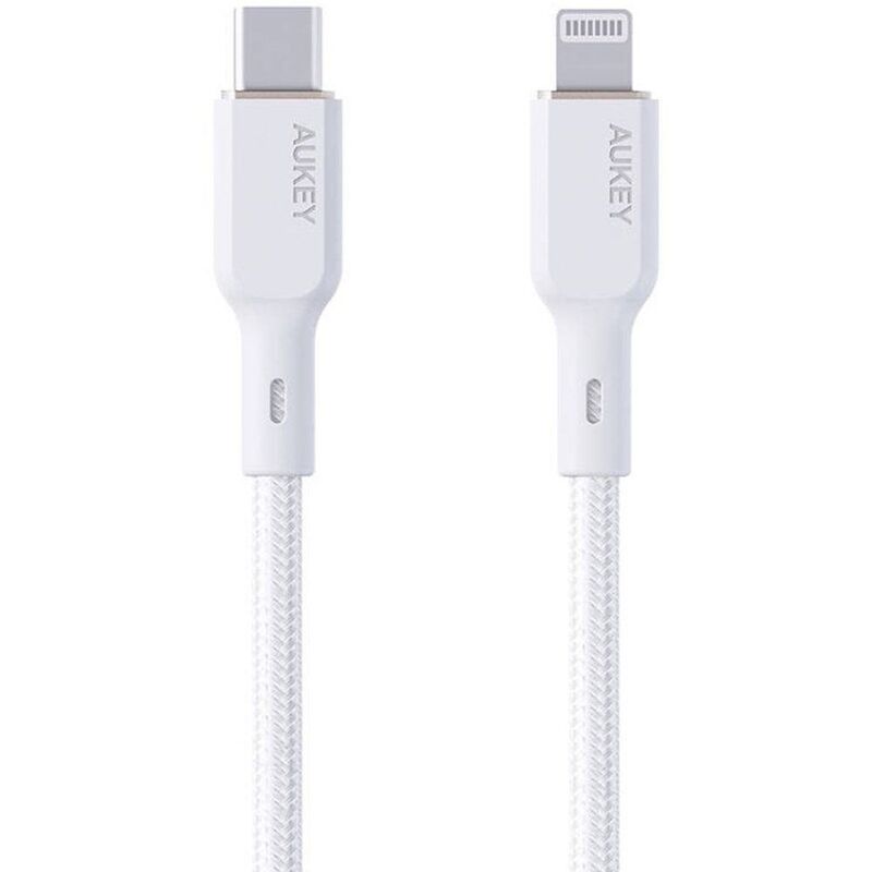 Aukey 1.8M Nylon Braided USB-C To Lightning Cable - Wite